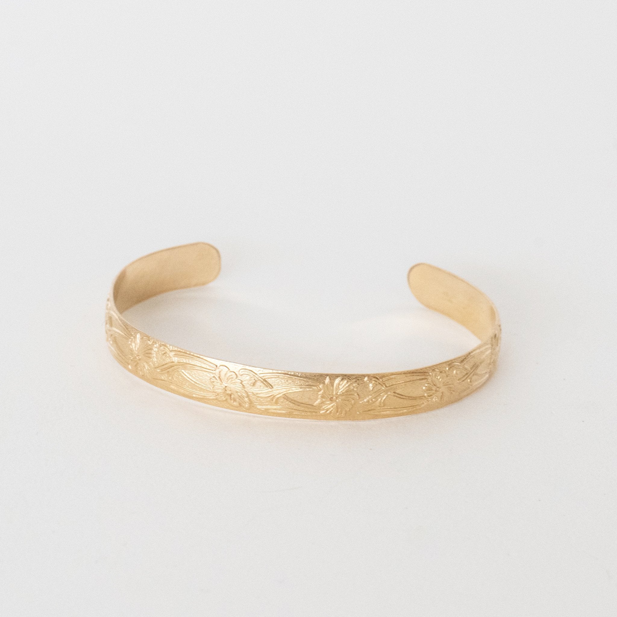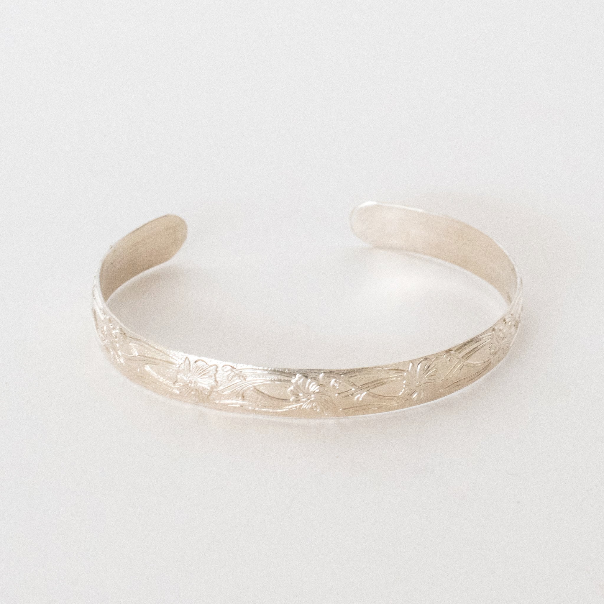 Delicate bangle with floral design. Petal bracelet is available in Sterling Silver or Gold-Filled.